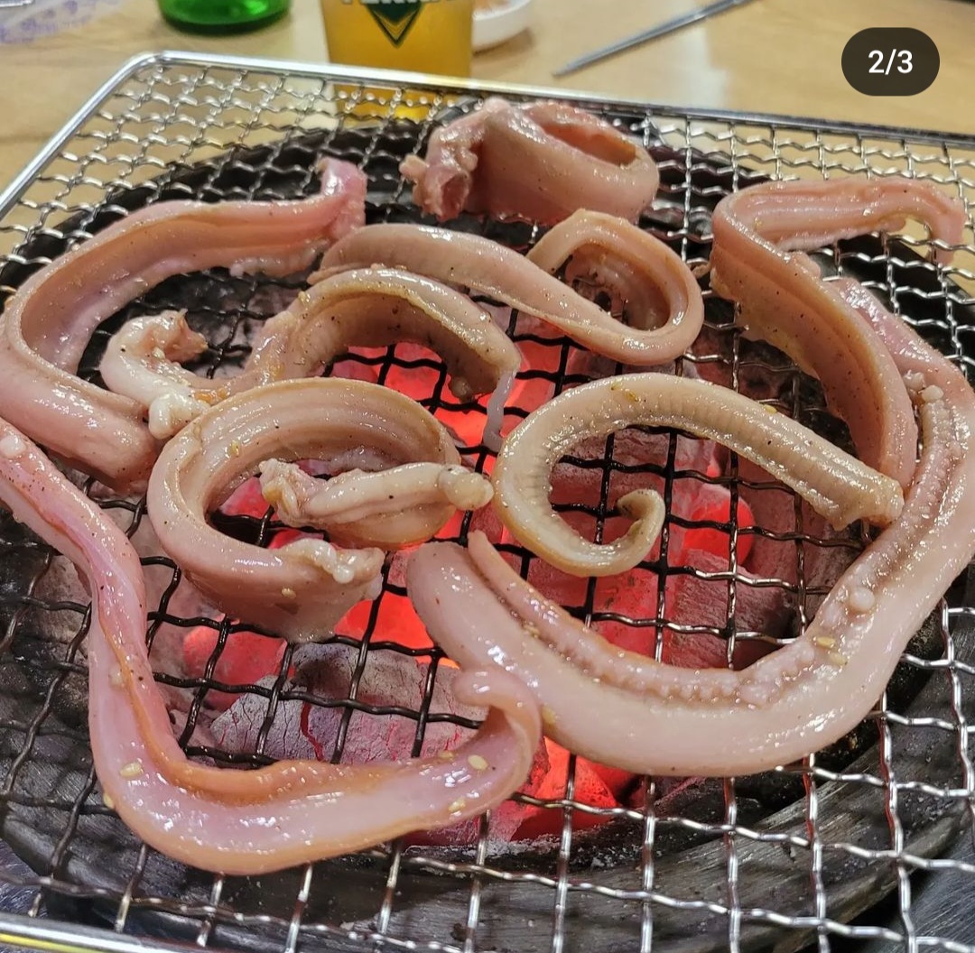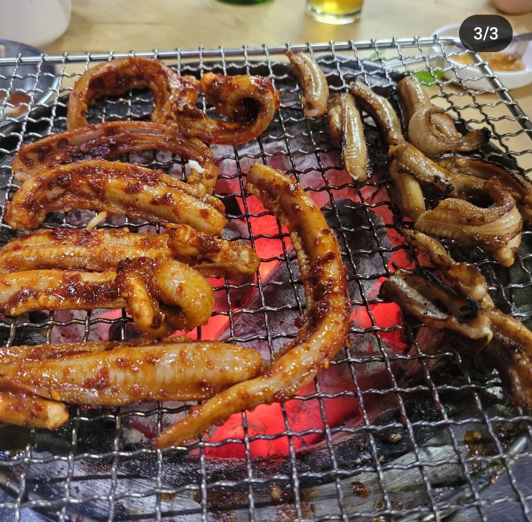 숯불에 쭈꾸미를 구워줍니다~~맛있구요..